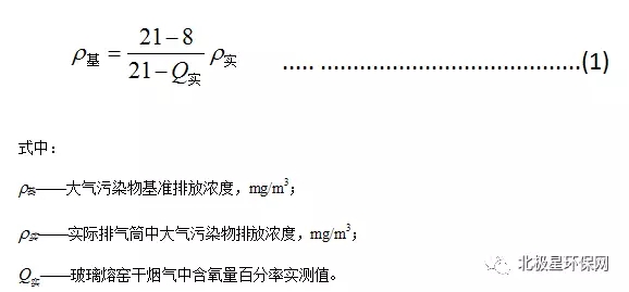 1.4 對(duì)于玻璃熔窯排氣(純氧燃燒除外),應(yīng)同時(shí)對(duì)排氣中含氧量進(jìn)行監(jiān)測(cè),實(shí)測(cè)排氣筒中大氣污染物排放濃度應(yīng)按式(1)換算為含氧量為8%狀態(tài)下的基準(zhǔn)排放濃度,并以此作為排放是否達(dá)標(biāo)的依據(jù)。其他車(chē)間或生產(chǎn)設(shè)施排氣按實(shí)測(cè)濃度計(jì)算,但不得人為稀釋排放。